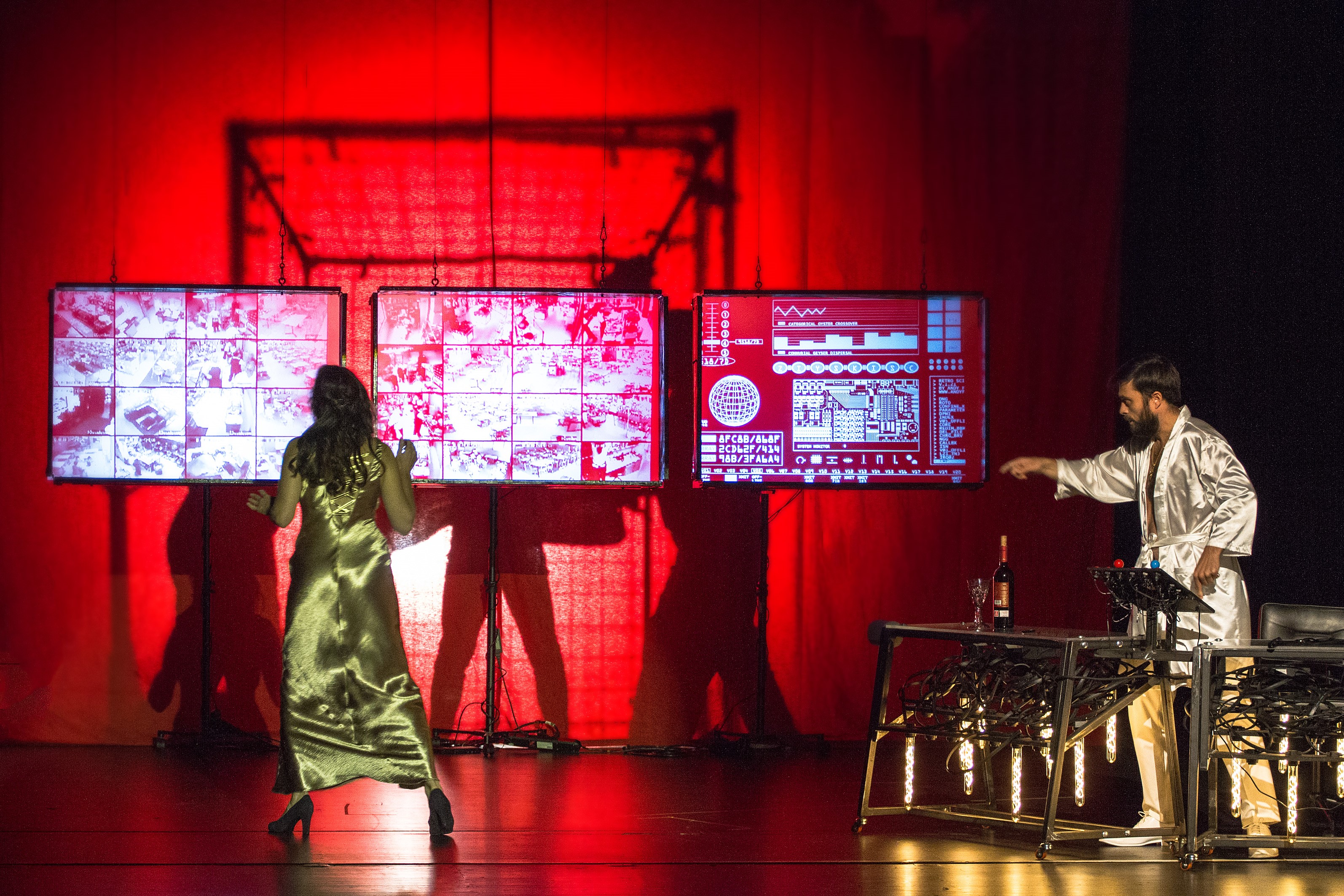 Die Compagnia Nuova bringt „Tosca“ in bewährter Manier auf die Bühne: Leicht gekürzt und begleitet von einem Pianisten, komprimieren fünf internationale Opernsängerinnen und -sänger die Oper auf ihren Kern und bieten eine werktreue, aber gleichzeitig hochmoderne Lesart. Mit Bezügen zu George Orwells Überwachungsstaat in „1984“ in Inszenierung und Bühnenbild erzählt die Inszenierung die Geschichte einer heutigen Diva im Kampf mit einem vielköpfigen Drachen: einer mediengetriebenen, dystopischen Gesellschaft.