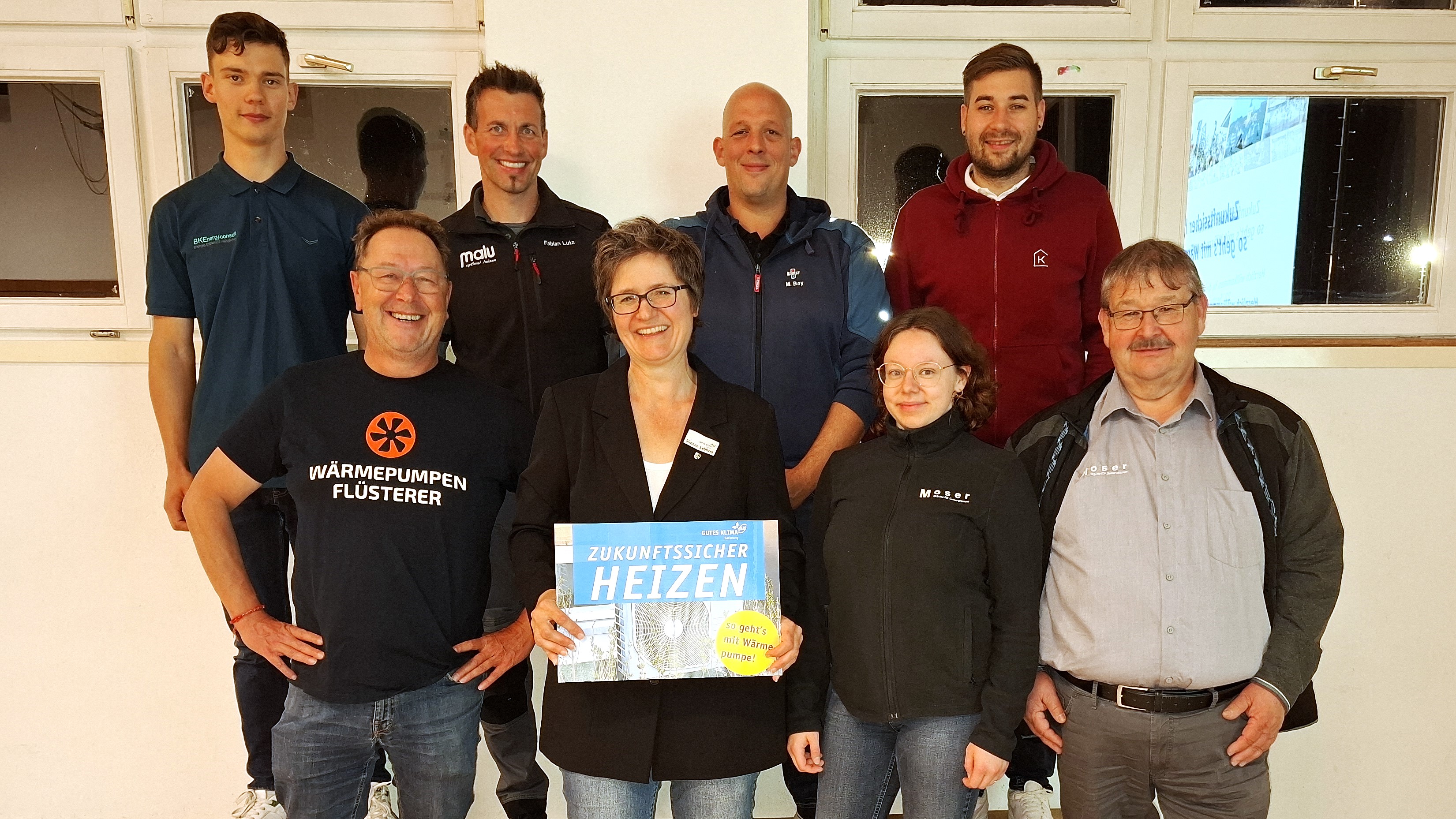 Bei der Wärmepumpen-Veranstaltung im September 2025 in Steinbach haben folgende Experten unterstützt - von links oben im Uhrzeigersinn: Tom Anthony (BK-Energyconsult, Backnang), Fabian Lutz (malu GmbH, Weissach im Tal), Mario Bay (Adolf Wurst GmbH, Backnang), Daniel Knödler (Knödler-Heizungsbau, Auenwald), Harald und Jula Moser (Moser GmbH Backnang), Simone Lebherz (Klimamanagerin, Backnang), Markus Rausch (Rausch GmbH, Sulzbach/Murr) - nicht im Bild: Daniel Schmid (Schmid Energieberatung, Backnang)
