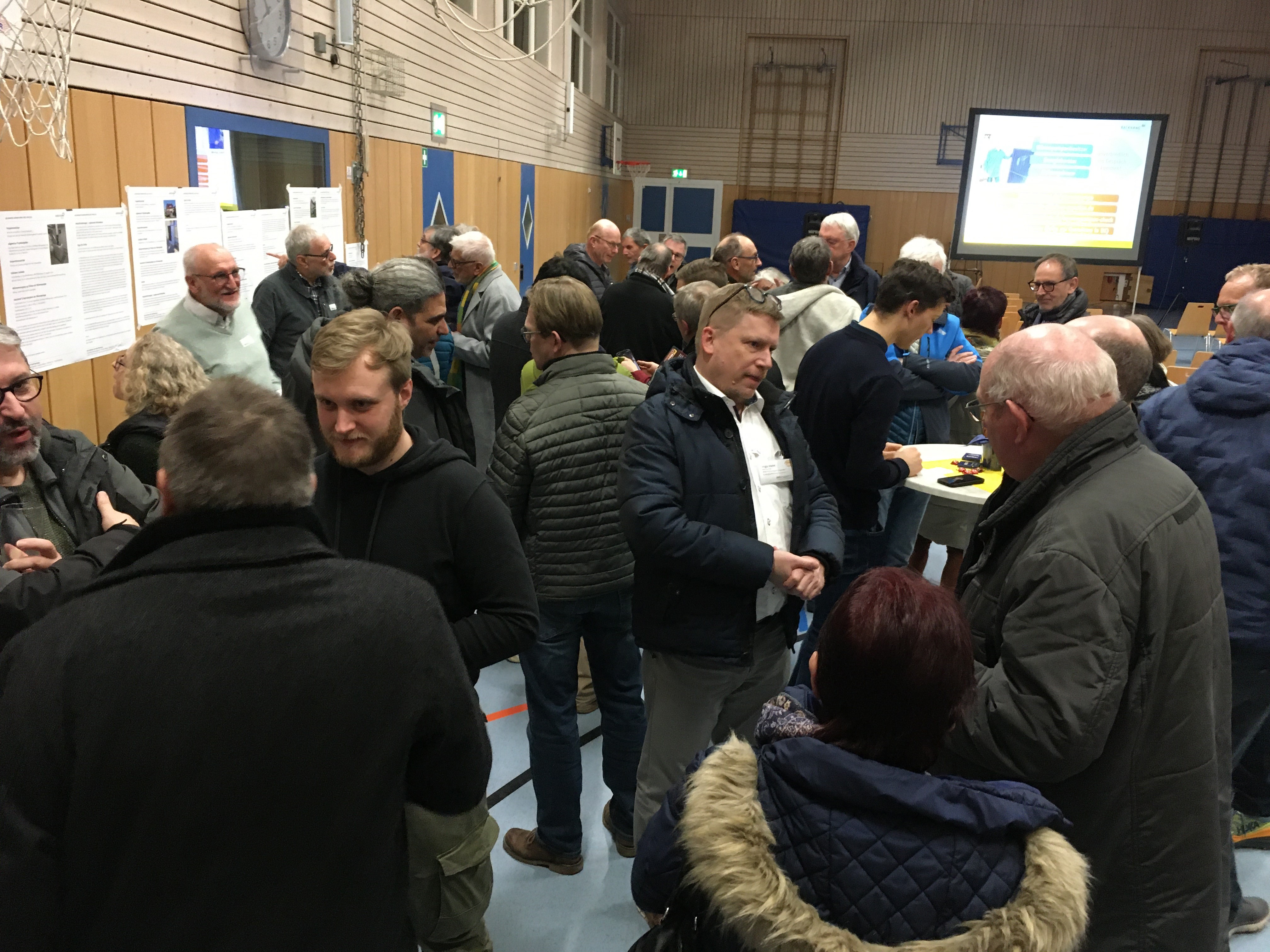 Zahlreiche Gebäudebesitzer haben die Gelegenheit genutzt, sich in der Maubacher Mehrzweckhalle über zukunftsfähige Heizoptionen zu informieren. Von vielen Gästen kam die Rückmeldung, dass der Vortrag gut verständlich hilfreiches Basiswissen vermittelt hat. Ein Großteil der mehr als 100 Besucher nutzten auch das Angebot, im Anschluss beim Ständerling mit den anwesenden Wärmepumpenbesitzer, Heizungsbauern und Energieberater konkrete Fragen zu diskutieren und sich praktische Tipps zu holen. Die an den Wänden präsentierten Steckbriefe von Wärmepumpen aus Backnang und Umgebung boten viele Anknüpfungspunkte für interessante Gespräche.